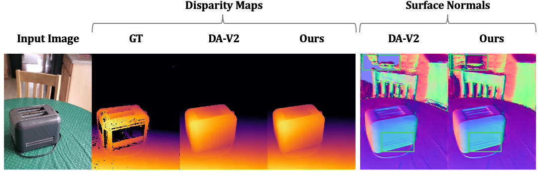 Monocular depth estimation remains challenging as recent foundation models, such as Depth Anything V2 (DA-V2), struggle with real-world images that are far from the training distribution.